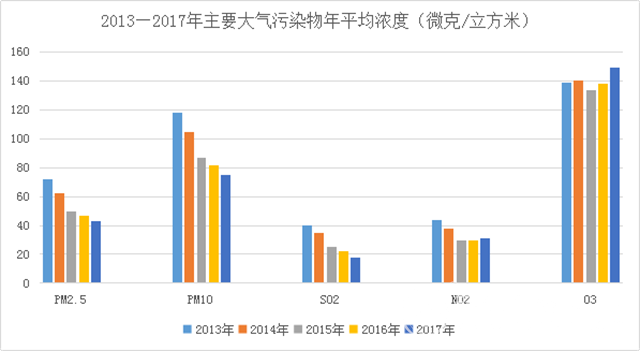 這5年,主要大氣污染物年平均濃度整體呈下降趨勢(shì)。