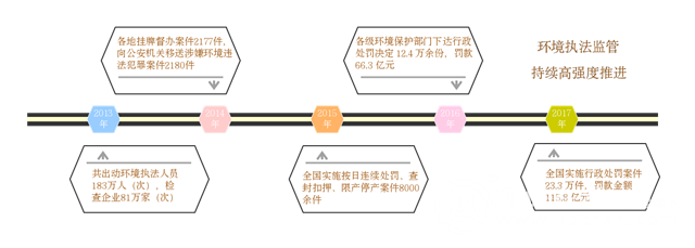這5年,環(huán)境執(zhí)法監(jiān)管持續(xù)高強(qiáng)度推進(jìn)。